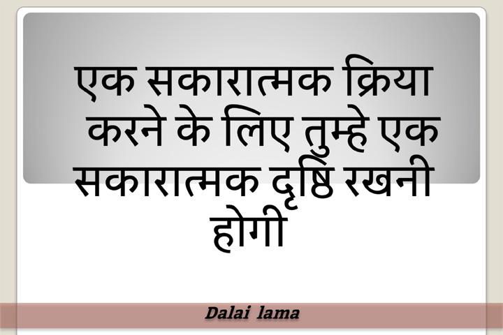 एक सकारात्मक क्रिया करने के लिए तुम्हे एक सकारात्मक दृष्ठि रखनी होगी